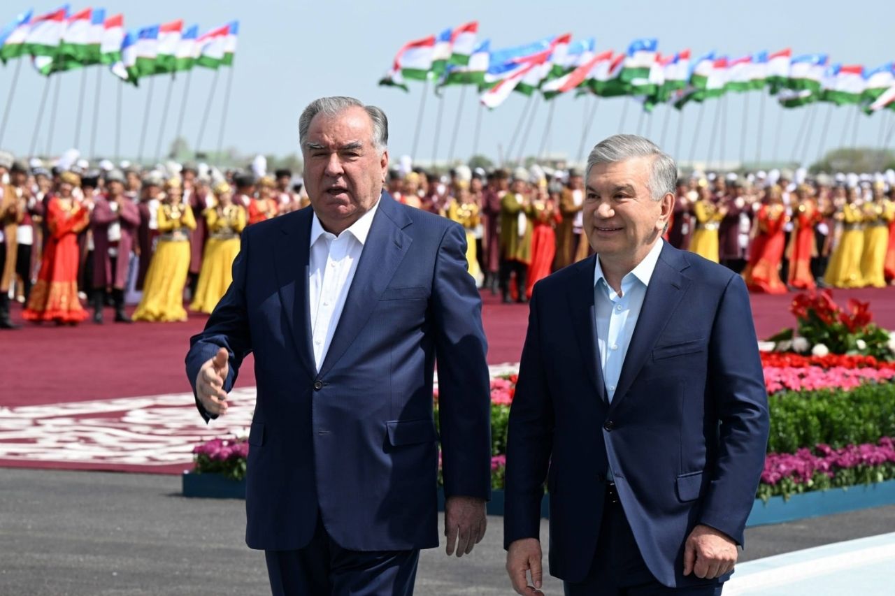 Шавкат Мирзиёев Бухорода Эмомали Раҳмонни кутиб олди