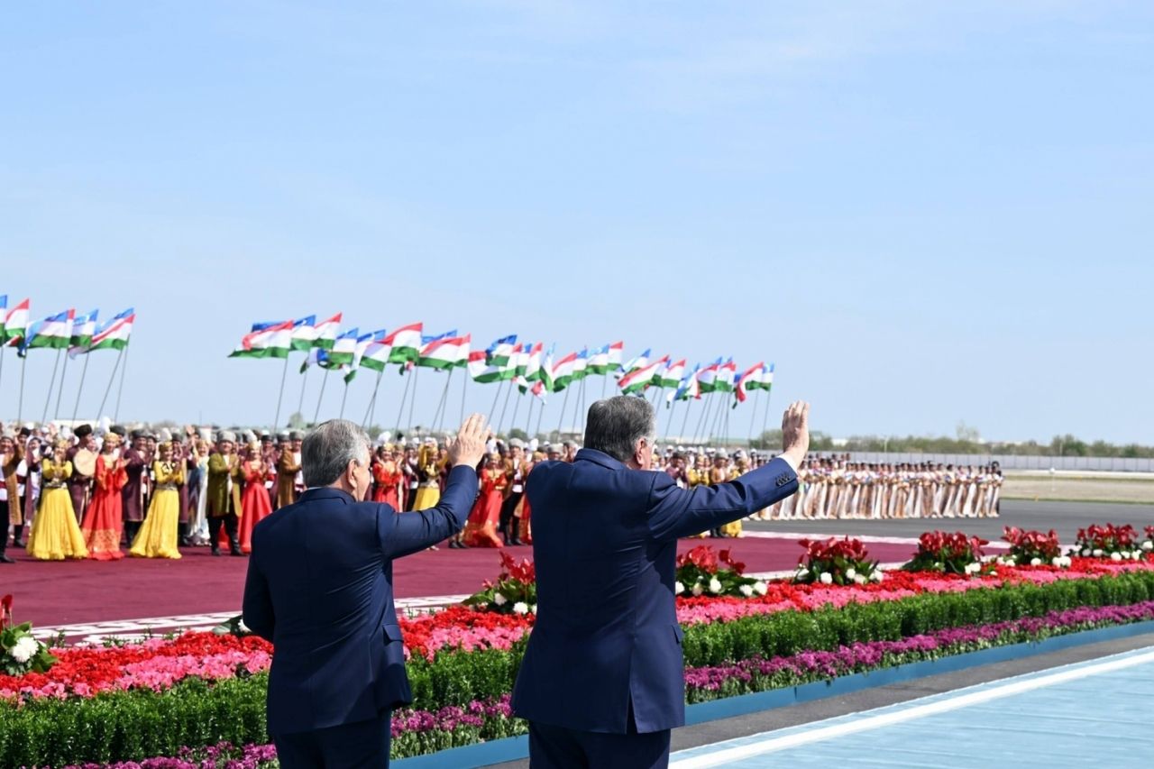 Тантанали кутиб олиш маросими бўлди. Олий мартабали меҳмон шарафига миллий қўшиқ ва рақслар ижро этилди.