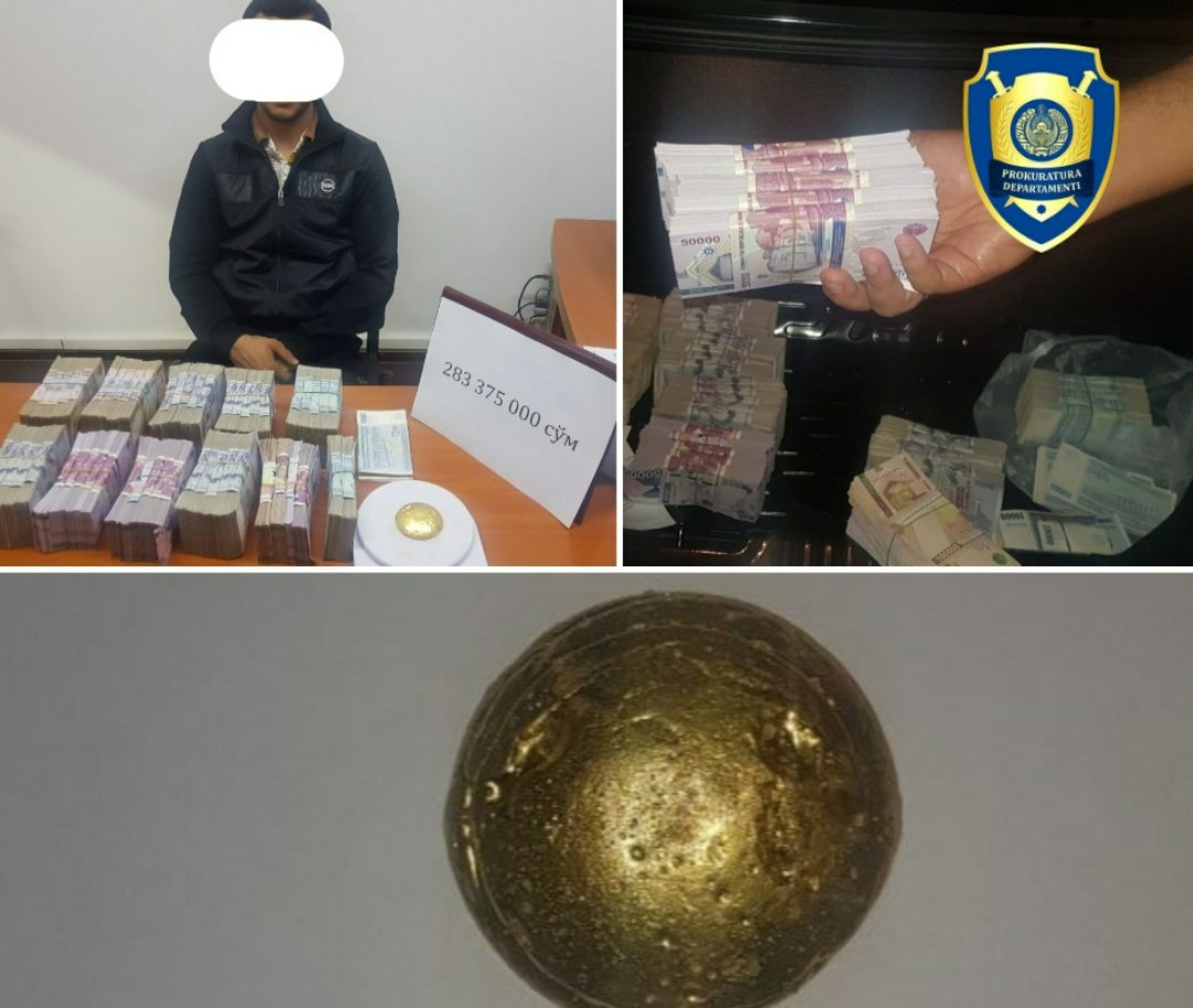 Маълум қилинишича, Бош прокуратура ҳузуридаги департамент ҳамда ДХХнинг Навоий вилояти бошқармалари томонидан ўтказилган тезкор тадбирда фуқаролар Д.Э. ва Б.Р. ноқонуний даромад орттириш мақсадида Самарқанд вилояти Пахтачи тумани, «Султонобод» МФЙ ҳудудида фуқаро Б.га оғирлиги 474,75 грамм бўлган 1 дона олтинга ўхшаш сариқ рангли қуйма металлни 287,3 миллион сўмга сотган вақтида ашёвий далиллар билан ушланган.